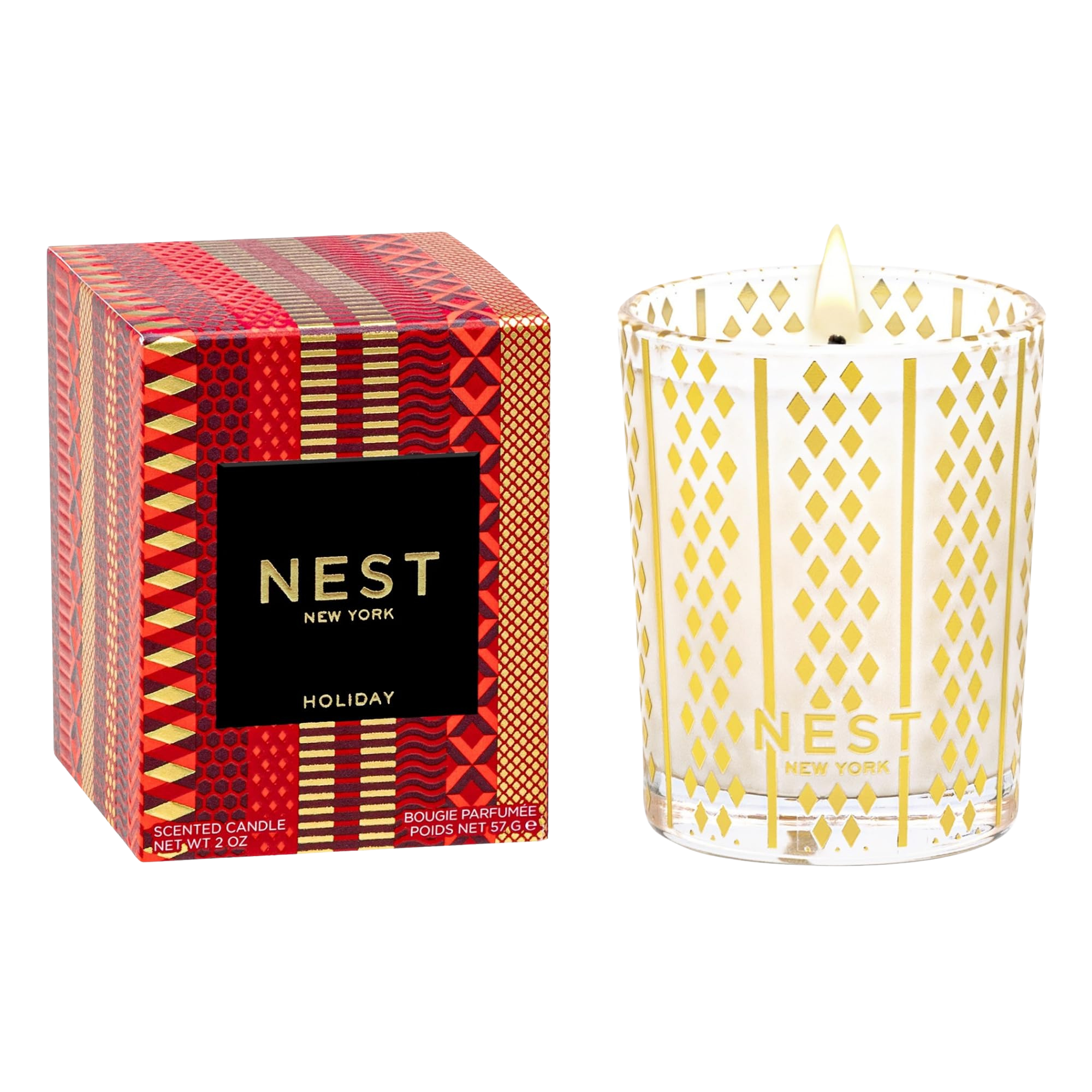Create the quintessential aroma of the season with this best-selling fragrance: Holiday. This exquisitely fragranced classic candle features the iconic scent's blend of pomegranate, mandarin orange, pine, cloves and cinnamon with a hint of vanilla and amber.
